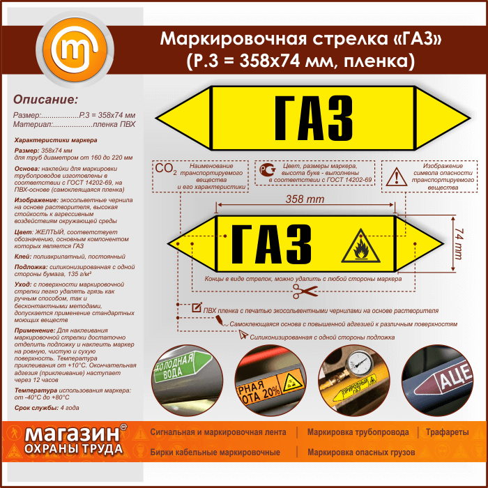 Маркировочная стрелка «ГАЗ» (P.3 = 358х74 мм, самоклеящаяся плёнка) в Ачинске купить