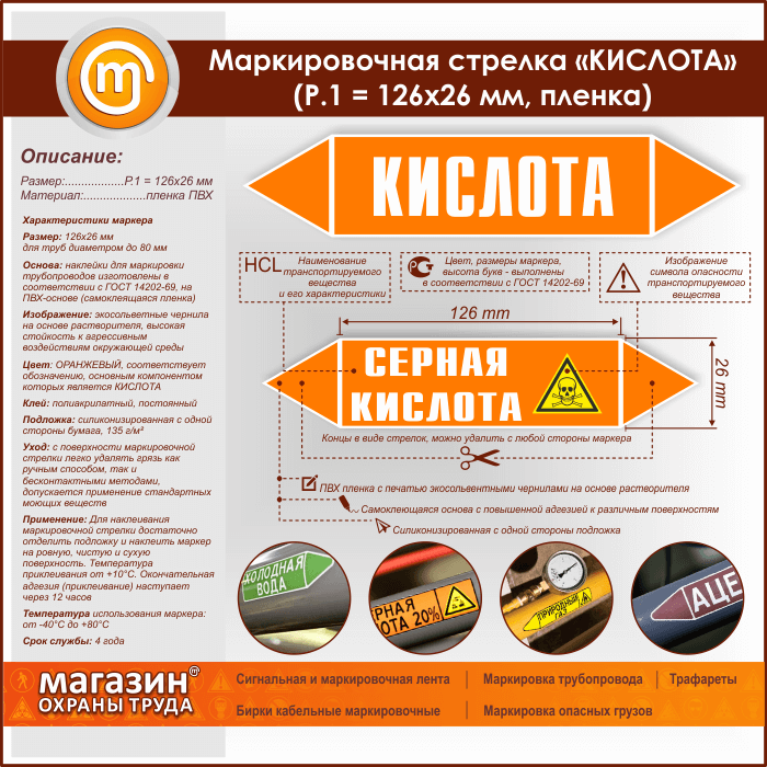 Маркировочная стрелка «КИСЛОТА» (Р.1 = 126х26 мм, самоклеящаяся плёнка) в Ачинске купить