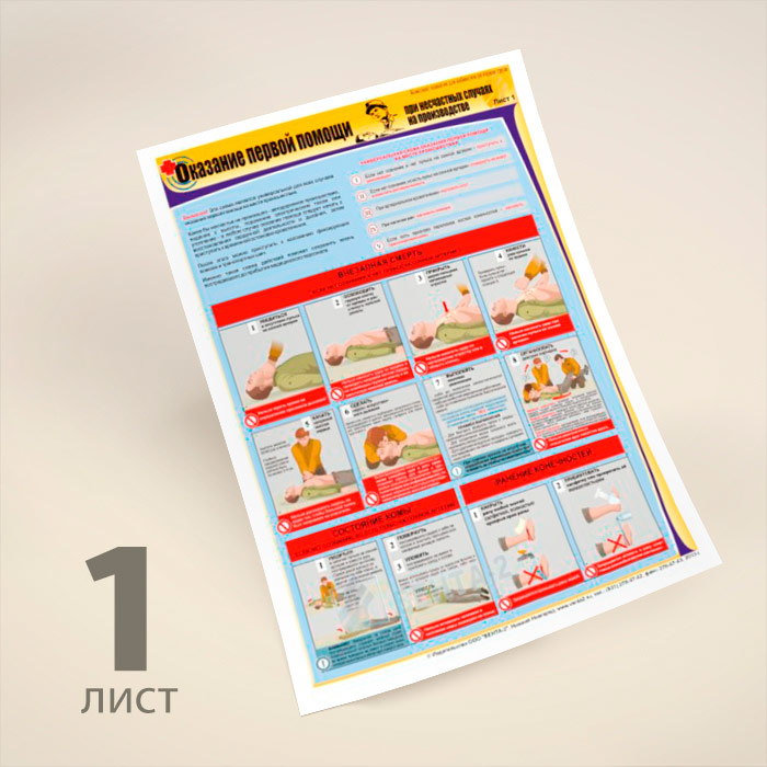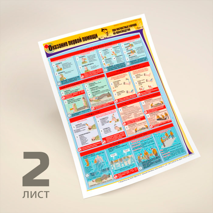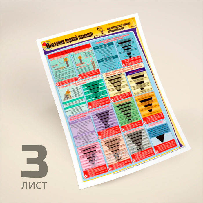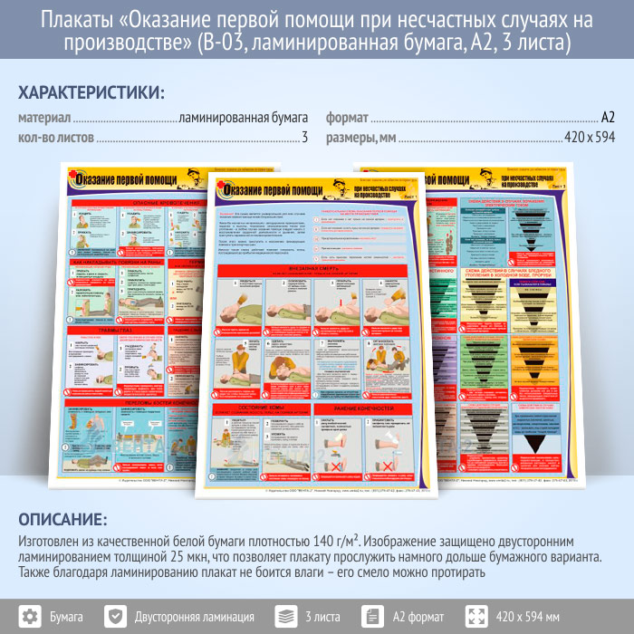 Плакаты «Оказание первой помощи при несчастных случаях на производстве» (В-03, ламинированная бумага, А2, 3 листа) в Ачинске купить