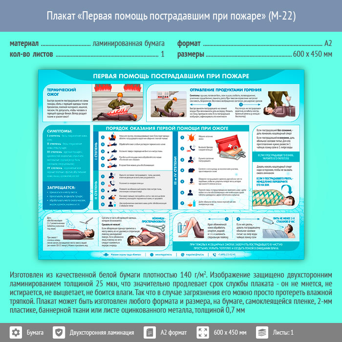 Плакат «Первая помощь пострадавшим при пожаре» (М-22, ламинированная бумага, А2, 1 лист) в Ачинске купить