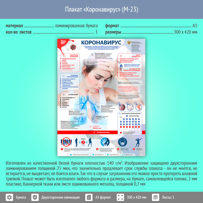 Плакат «Коронавирус» (М-23, ламинированная бумага, А3, 1 лист) в Ачинске купить