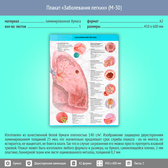 Плакат «Заболевания легких» (М-30, ламинированная бумага, А2, 1 лист) в Ачинске купить