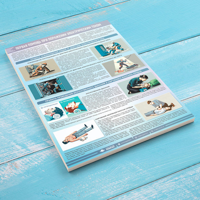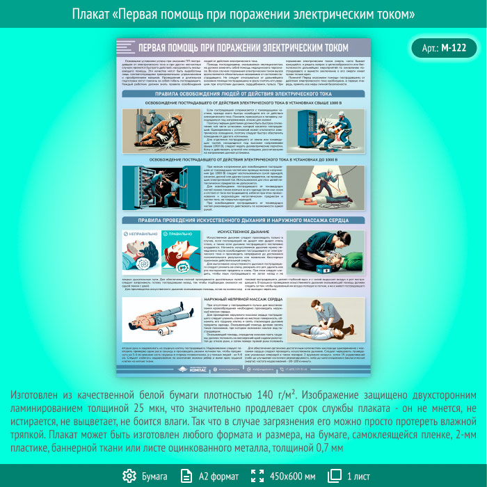 Плакат «Первая помощь при поражении электрическим током» (М-122, ламинированная бумага, А2, 1 лист) в Ачинске купить