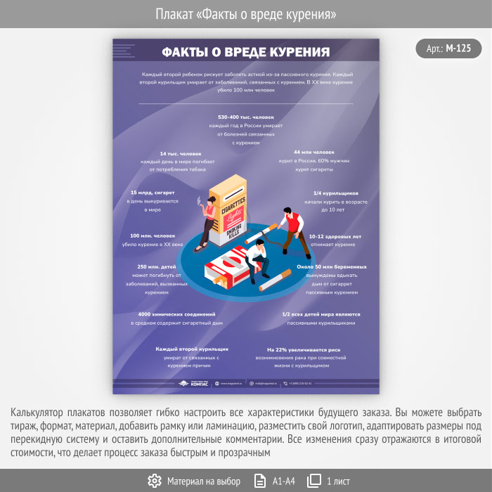 Плакат «Факты о вреде курения» (М-125, 1 лист) в Ачинске купить
