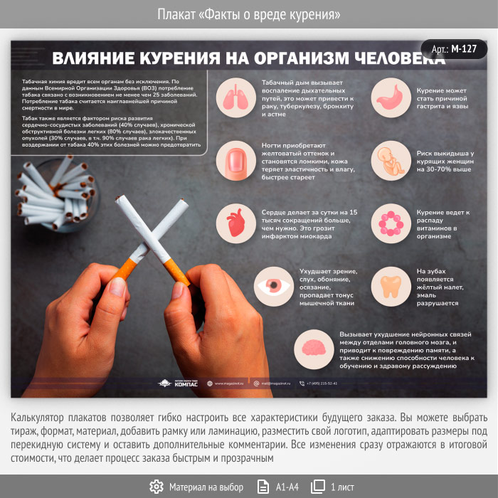 Плакат «Факты о вреде курения» (М-127, 1 лист) в Ачинске купить