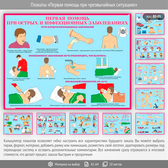 Плакаты «Первая помощь при чрезвычайных ситуациях» (ВЗ-05, 10 листов) в Ачинске купить