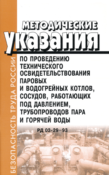 Методические указания по проведению технического освидетельствования паровых и водогрейных котлов, сосудов, работающих под давлением, трубопроводов пара и горячей воды. РД 03-29-93 (ЛД-103) в Ачинске купить