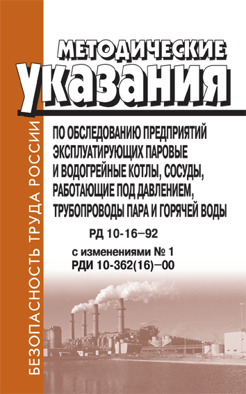 Методические указания по обследованию предприятий, эксплуатирующих паровые и водогрейные котлы, сосуды, работающие под давлением, трубопроводы пара и горячей воды. РД 10-16-92 (ЛД-112) в Ачинске купить