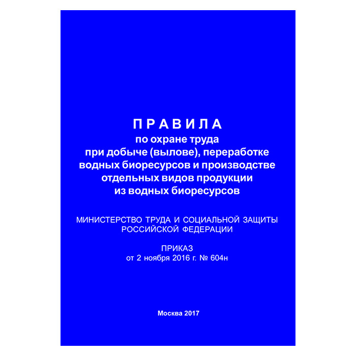 Правила по охране труда при добыче (вылове), переработке водных биоресурсов и производстве отдельных видов продукции из водных биоресурсов (Приказ Минтруда РФ от 02.11.2016 № 604н) (ЛАП-22) в Ачинске купить