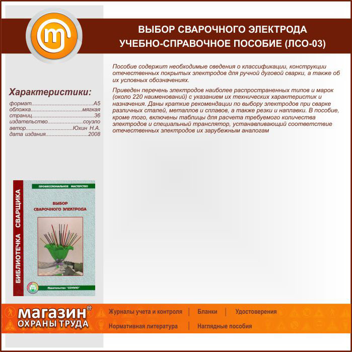 Выбор сварочного электрода – учебно-справочное пособие (ЛСО-03) в Ачинске купить