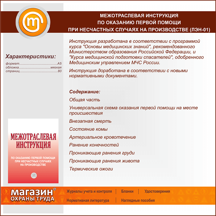 Межотраслевая инструкция по оказанию первой помощи при несчастных случаях на производстве (ЛЭН-01) в Ачинске купить