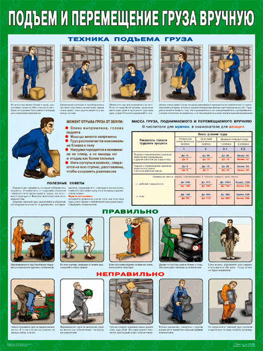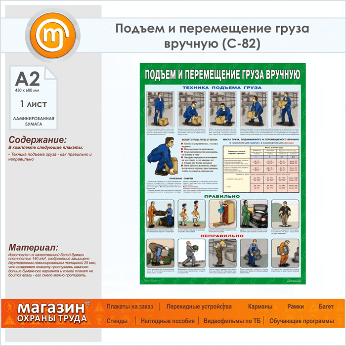 Плакат «Правила перемещения грузов вручную» (С-82, ламинированная бумага, А2, 1 лист) в Ачинске купить