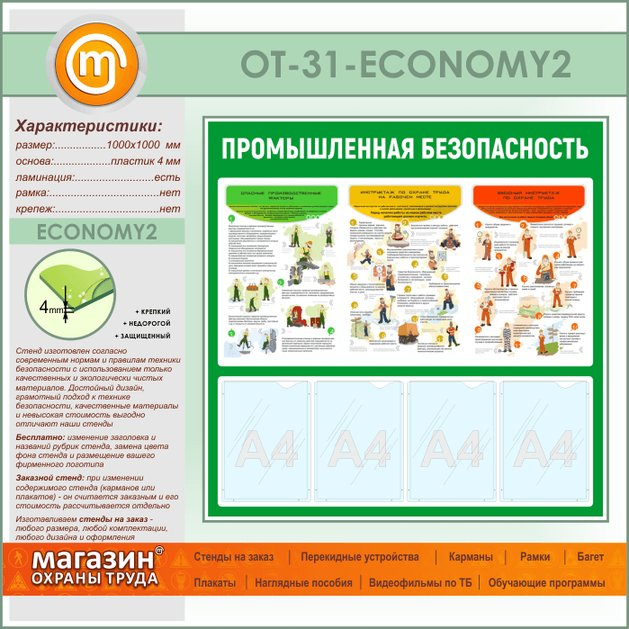 Стенд «Промышленная безопасность» с 4 карманами (OT-31-ECONOMY2) в Ачинске купить