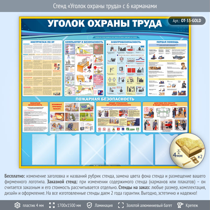 Стенд «Уголок охраны труда» с 6 карманами (OT-33-GOLD) в Ачинске купить