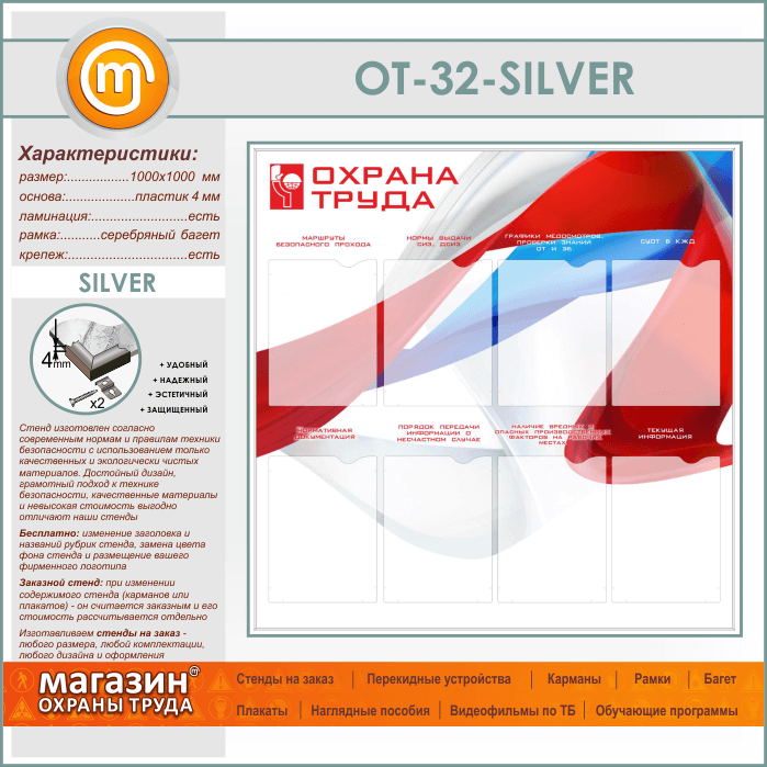 Стенд «Охрана труда» с 8 карманами (OT-32-SILVER) в Ачинске купить