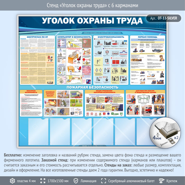 Стенд «Уголок охраны труда» с 6 карманами (OT-33-SILVER) в Ачинске купить
