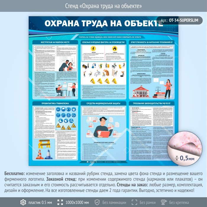 Стенд «Охрана труда на объекте» (OT-34-SUPERSLIM) в Ачинске купить