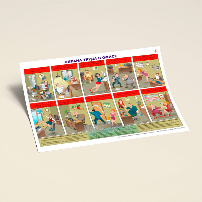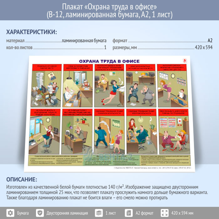 Плакат «Охрана труда в офисе» (В-12, ламинированная бумага, А2, 1 лист) в Ачинске купить