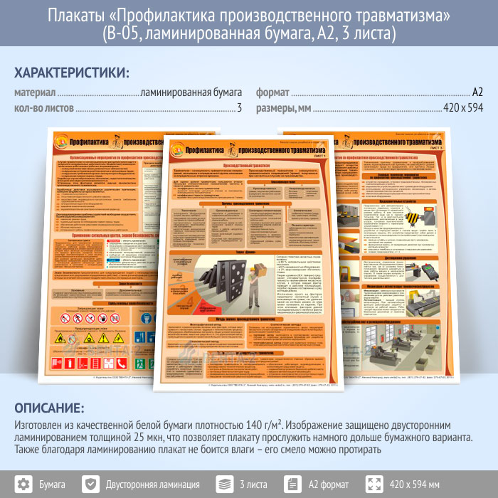 Плакаты «Профилактика производственного травматизма» (В-05, ламинированная бумага, А2, 3 листа) в Ачинске купить