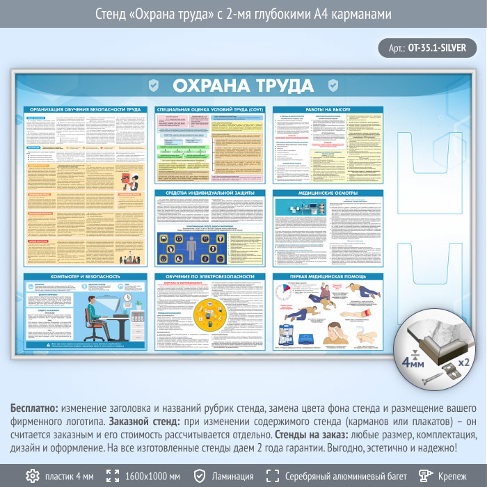 Стенд «Охрана труда» с 2-мя глубокими А4 карманами (OT-35.1-SILVER) в Ачинске купить