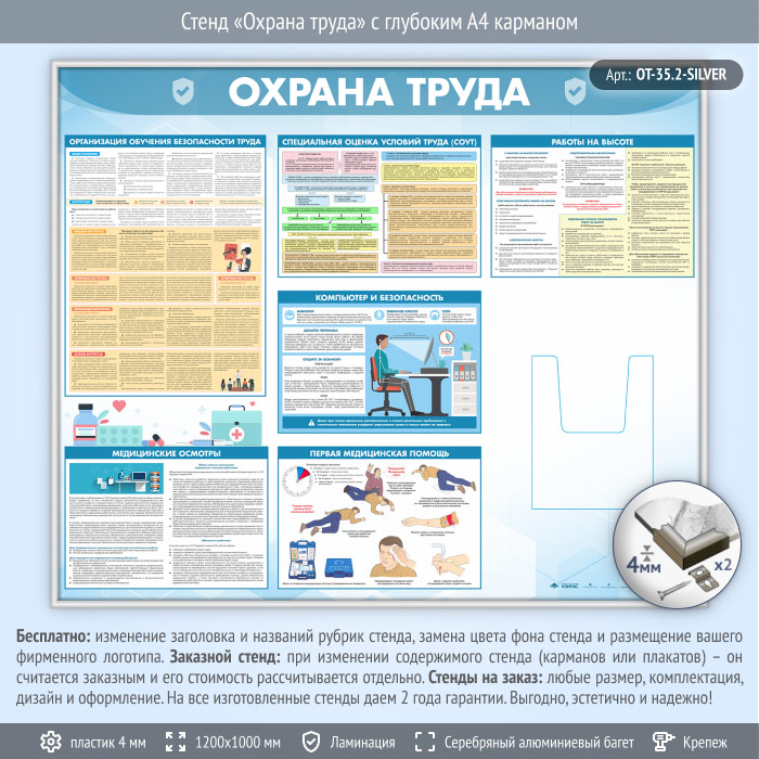 Стенд «Охрана труда» с глубоким А4 карманом (OT-35.2-SILVER) в Ачинске купить