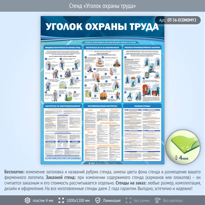 Стенд «Уголок охраны труда» (OT-36-ECONOMY2) в Ачинске купить
