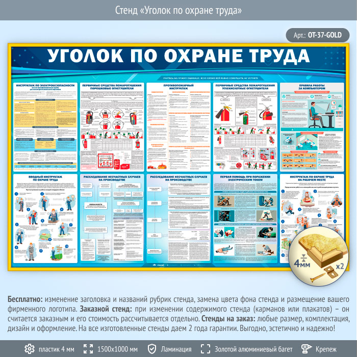 Стенд «Уголок по охране труда» (OT-37-GOLD) в Ачинске купить