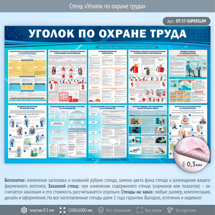 Стенд «Уголок по охране труда» (OT-37-SUPERSLIM) в Ачинске купить