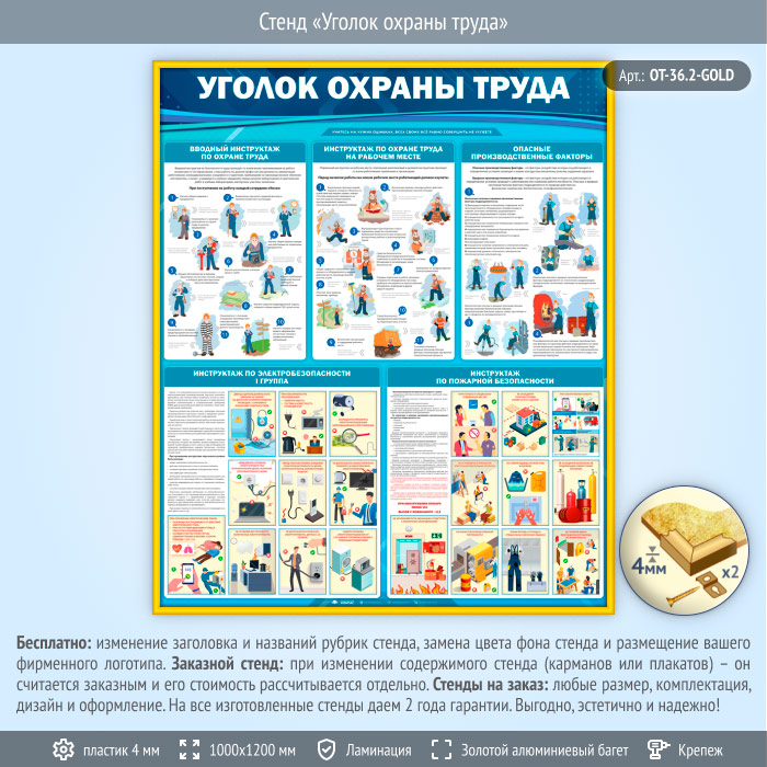 Стенд «Уголок охраны труда» (OT-36.2-GOLD) в Ачинске купить