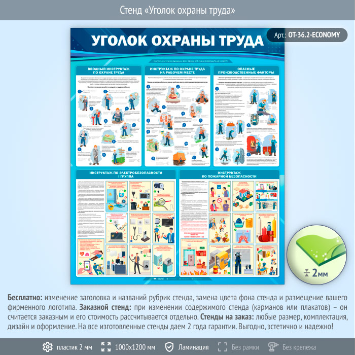 Стенд «Уголок охраны труда» (OT-36.2-ECONOMY) в Ачинске купить