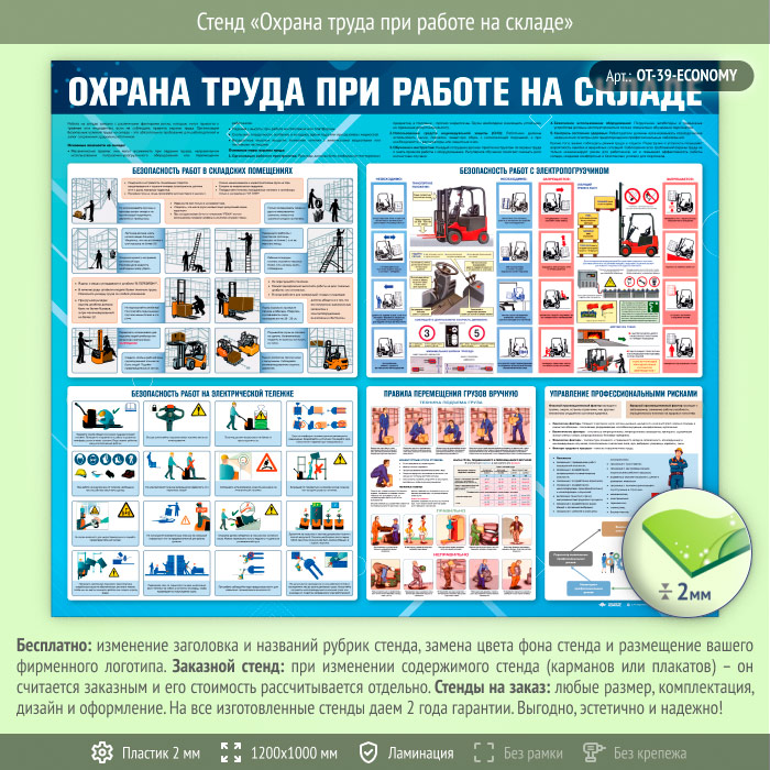 Стенд «Охрана труда при работе на складе» (OT-39-ECONOMY) в Ачинске купить