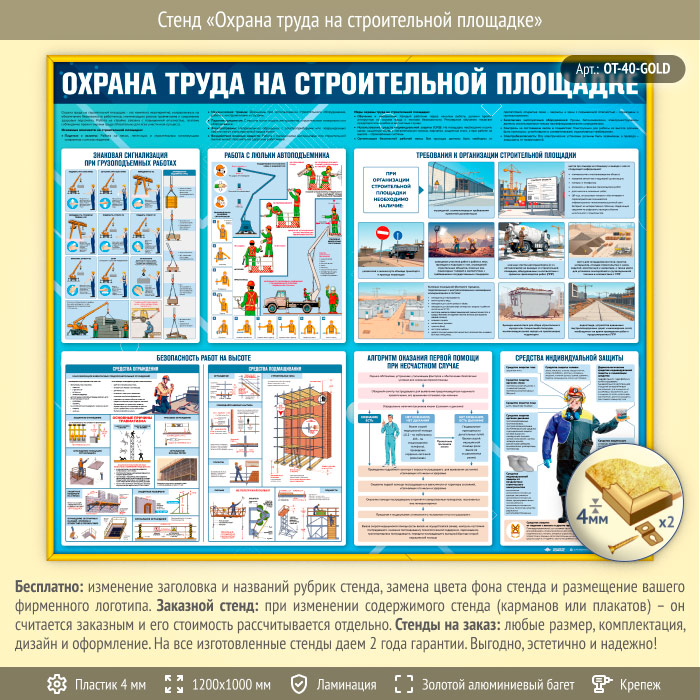 Стенд «Охрана труда на строительной площадке» (OT-40-GOLD) в Ачинске купить