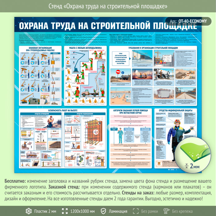 Стенд «Охрана труда на строительной площадке» (OT-40-ECONOMY) в Ачинске купить