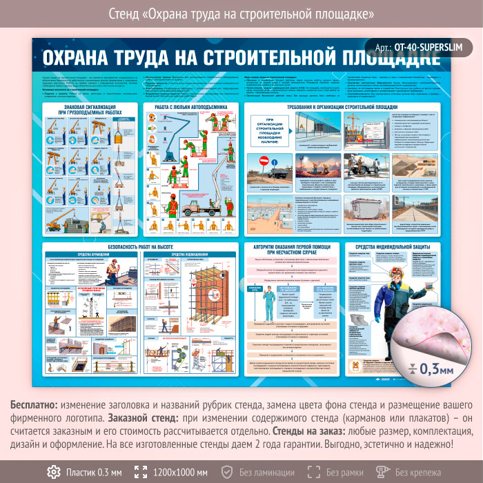 Стенд «Охрана труда на строительной площадке» (OT-40-SUPERSLIM) в Ачинске купить