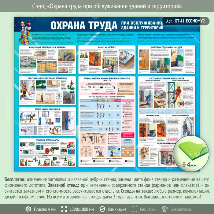 Стенд «Охрана труда при обслуживании зданий и территорий» (OT-41-ECONOMY2) в Ачинске купить