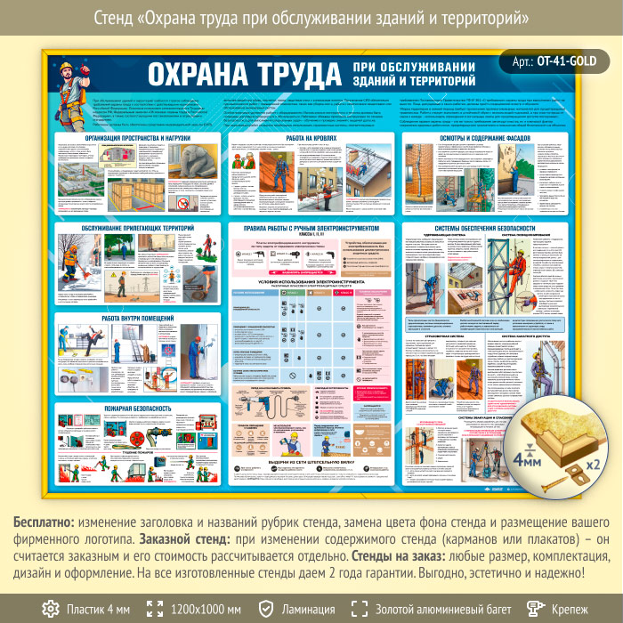 Стенд «Охрана труда при обслуживании зданий и территорий» (OT-41-GOLD) в Ачинске купить