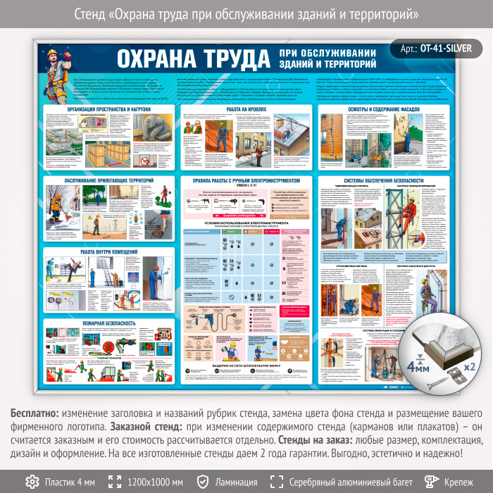 Стенд «Охрана труда при обслуживании зданий и территорий» (OT-41-SILVER) в Ачинске купить