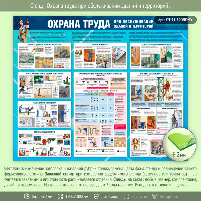 Стенд «Охрана труда при обслуживании зданий и территорий» (OT-41-ECONOMY) в Ачинске купить