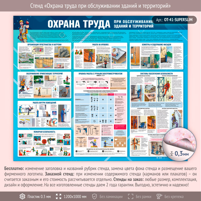 Стенд «Охрана труда при обслуживании зданий и территорий» (OT-41-SUPERSLIM) в Ачинске купить