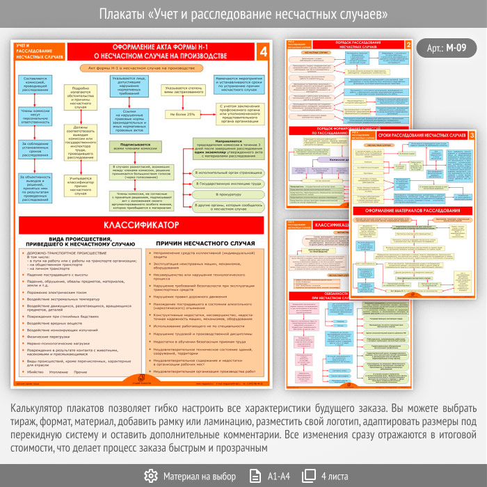 Плакаты «Учет и расследование несчастных случаев» (М-09, 4 листа) в Ачинске купить