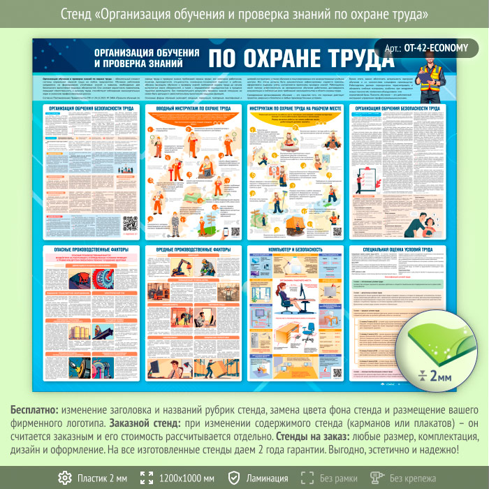 Стенд «Организация обучения и проверка знаний по охране труда» (OT-42-ECONOMY) в Ачинске купить