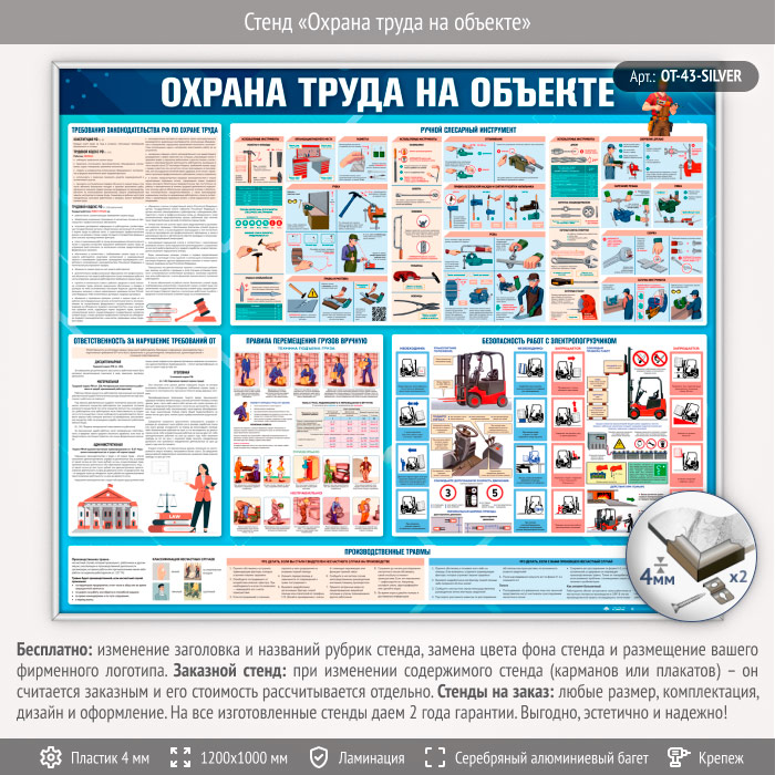 Стенд «Охрана труда на объекте» (OT-43-SILVER) в Ачинске купить