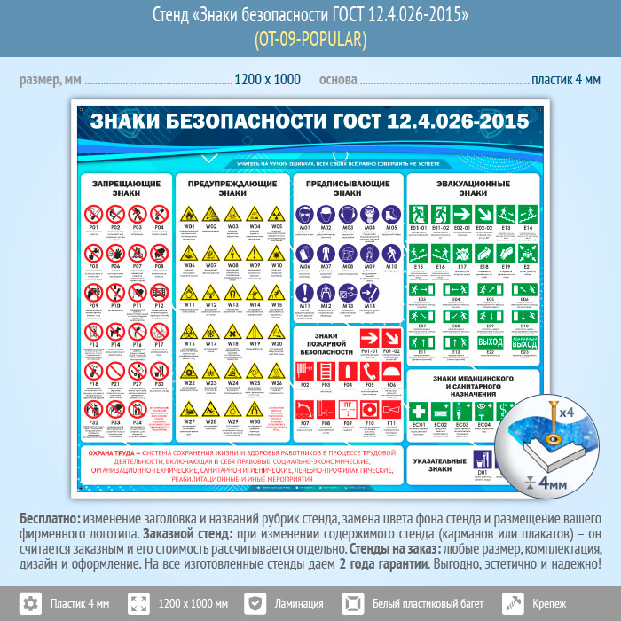 Стенд «Знаки безопасности ГОСТ 12.4.026-2015» (OT-09-POPULAR) в Ачинске купить