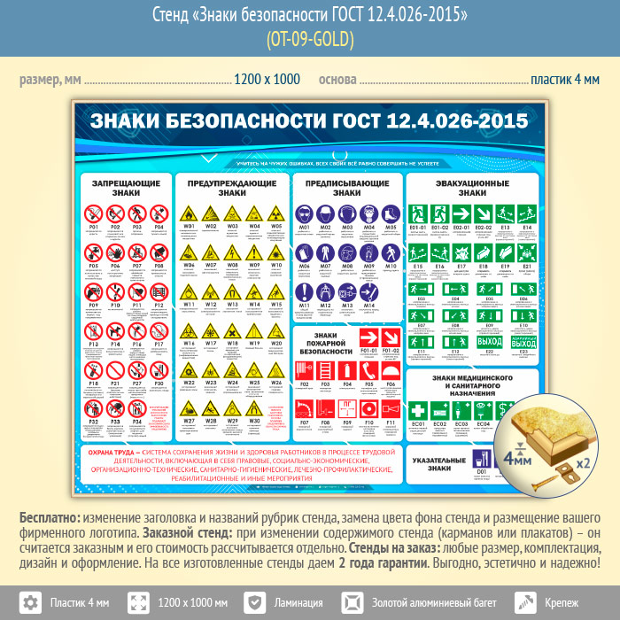 Стенд «Знаки безопасности ГОСТ 12.4.026-2015» (OT-09-GOLD) в Ачинске купить