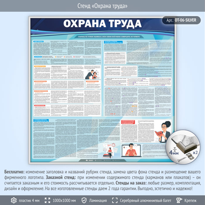 Стенд «Охрана труда» (OT-06-SILVER) в Ачинске купить
