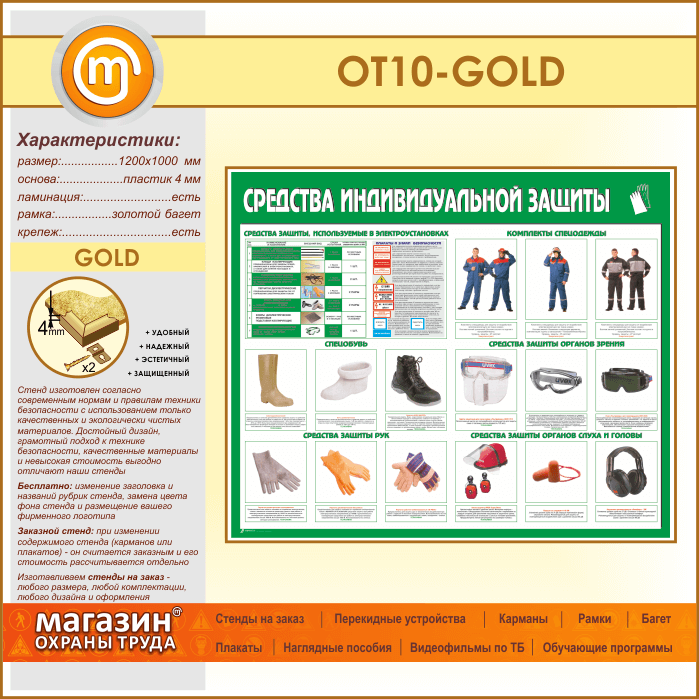 Стенд «Средства индивидуальной защиты» (OT-10-GOLD) в Ачинске купить