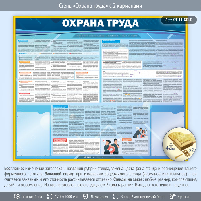 Стенд «Охрана труда» с 2 карманами (OT-11-GOLD) в Ачинске купить