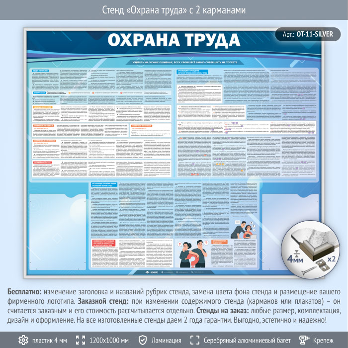 Стенд «Охрана труда» с 2 карманами (OT-11-SILVER) в Ачинске купить
