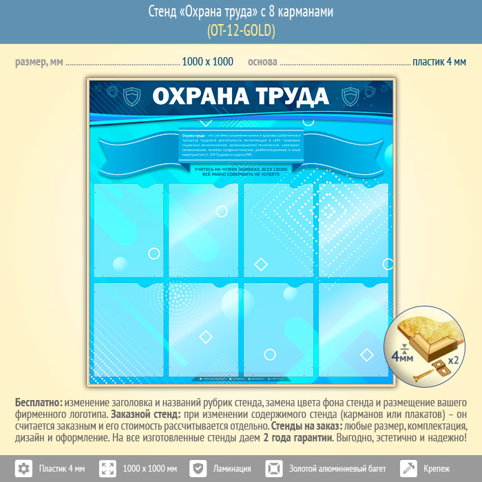 Стенд «Охрана труда» с 8 карманами (OT-12-GOLD) в Ачинске купить