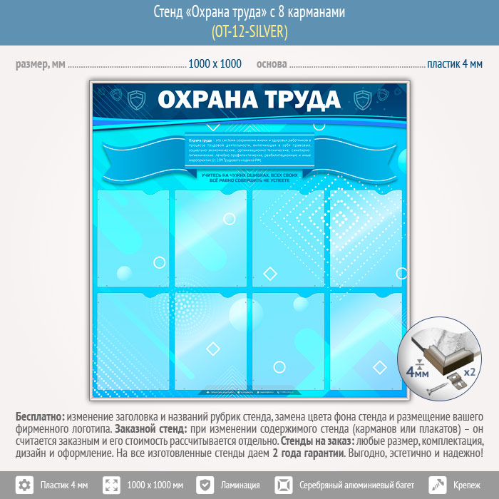 Стенд «Охрана труда» с 8 карманами (OT-12-SILVER) в Ачинске купить